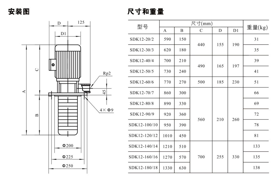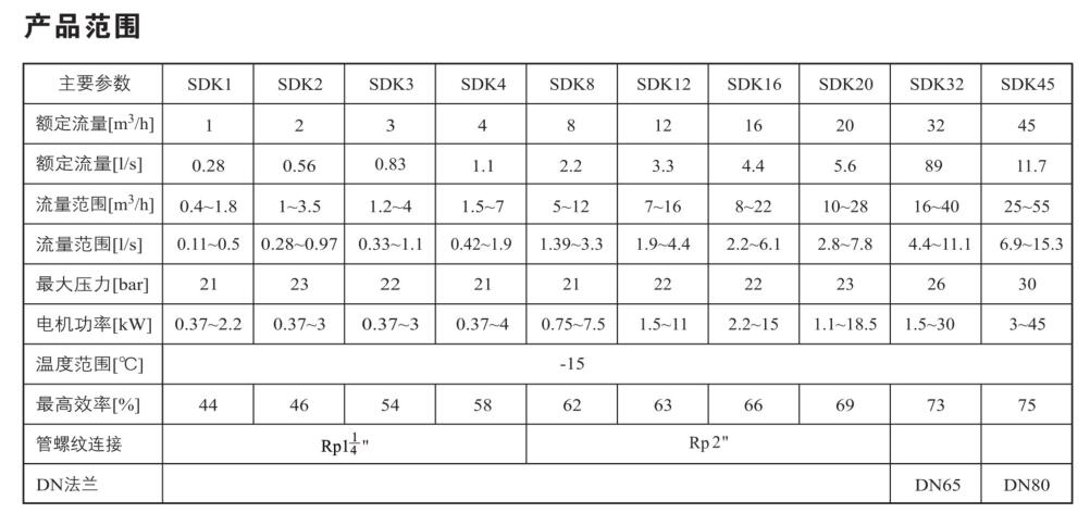 SDK12/SDKT12為配用標(biāo)準(zhǔn)電機的非自吸立式多級離心泵,電機軸和泵軸用聯(lián)軸器直接聯(lián)接的結(jié)構(gòu)。為滿足水槽或容器的安裝深度,可安裝空套的腔體來改變泵本身的侵入 深度。